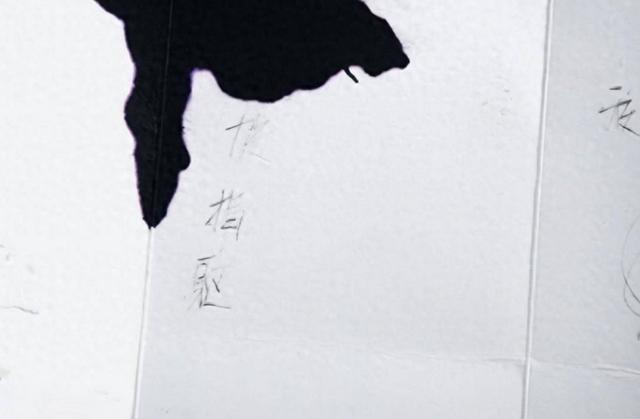 (▲何祥云老人在纸壳上写下“赶快捐躯”)
