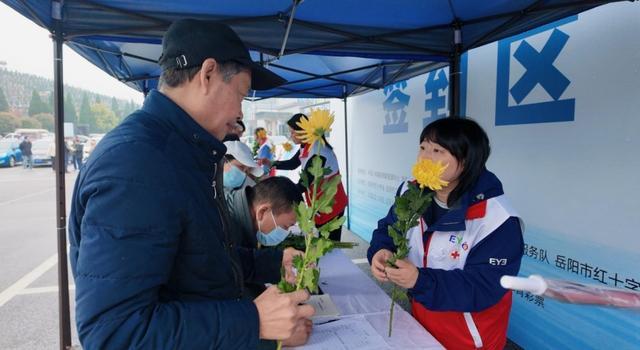 活动现场,松柏苍翠挺拔,菊花摇曳含情,岳阳市红十字人体器官(遗体)捐献者缅怀纪念园落成纪念碑正式揭幕。