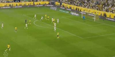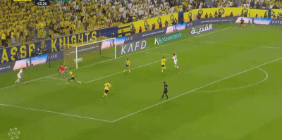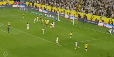 第45+9分钟,反超比分,马内突入禁区兜射破门,利雅得胜利2-1领先