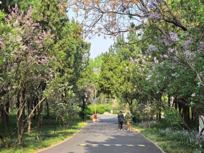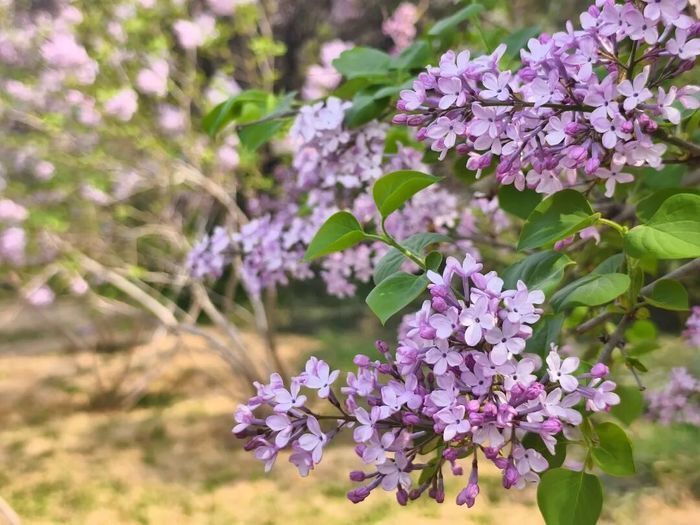 从西门至绿景苑,全长280米的丁香路,150余株丁香正盛放。紫丁香、白丁香、北京丁香交织成一条芬芳小径。“丁香空结雨中愁”,却锁不住其香气的绵长。微风吹过,花香沁人心脾。普通丁香花多为四瓣,五瓣属于基因变异,出现概率很低,相传找到五瓣丁香花被认为能获得好运,象征“五福”(和平、快乐、一帆风顺、长寿、幸运)。若你停下脚步细细寻觅,或许能遇见专属于你的小确幸。