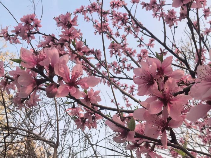桃园坐落于“四窟万像”北侧,占地约67000平方米,是千佛山春日踏青赏花的核心去处。绿叶碧桃、红叶碧桃、龙柱碧桃……各色桃花竞相绽放,或粉或红或白,重瓣层叠,灿若云霞。蜿蜒小径穿行其间,怪石点缀,随手一拍皆是“人面桃花相映红”的诗意画卷。