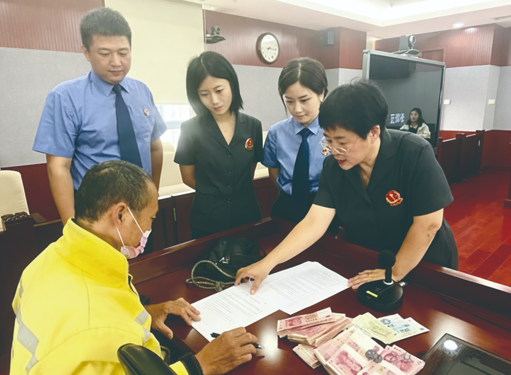 2025年5月,经过几个月的走访调查,苏侃在调取保安公司的社保记录时又发现,自2020年以来,保安公司名下的150多名员工只有13人缴纳了社保,这成为了案件的一个突破口。由此,检察机关与大兴区人力资源和社会保障局、区总工会等相关部门合力找到了保安公司的法定代表人,对方承认了通过保安队长向谢中贤发放工资的事实。与此同时,检法双方多次与当事人沟通,深入释法说理,阐明保安公司的用工责任、物业公司的外包监管义务,最终促成三方达成和解:物业公司与保安公司共同承担谢中贤的赔偿款。其中物业公司承担2万元,保安公司承担13万元。同时物业公司支付拖欠保安公司的39万余元安保服务费。