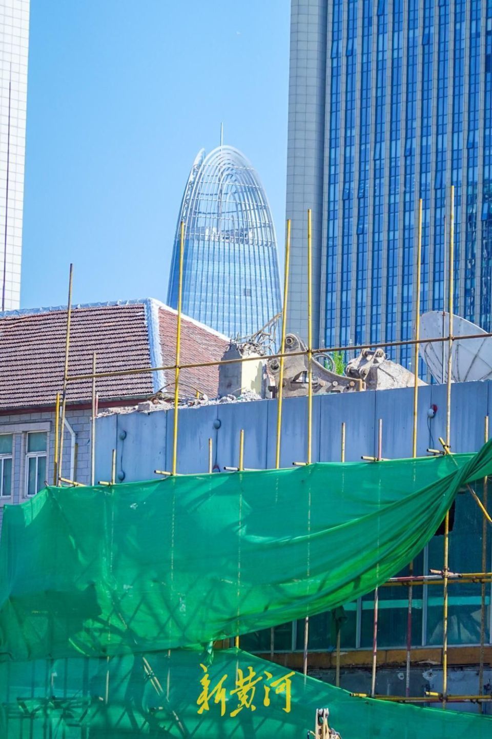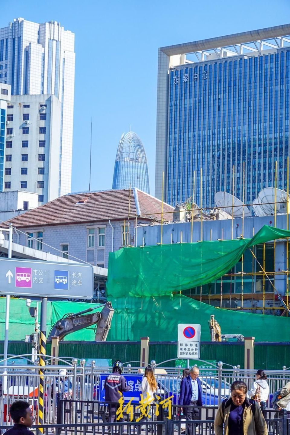 随着建筑高度逐日下降,站在火车站广场向南远眺,视野豁然开朗。最引人注目的是,两座济南昔日的“第一高楼”首次在火车站广场实现清晰同框,其中,济南明珠国际商务港高188米,2005年建成,曾长期占据济南第一高楼称号,至今仍是经一路沿线的重要天际线地标;绿地中心高303米,2015年建成,当年刷新泉城建筑高度纪录,现仍为济南核心城区标志性超高层建筑之一。