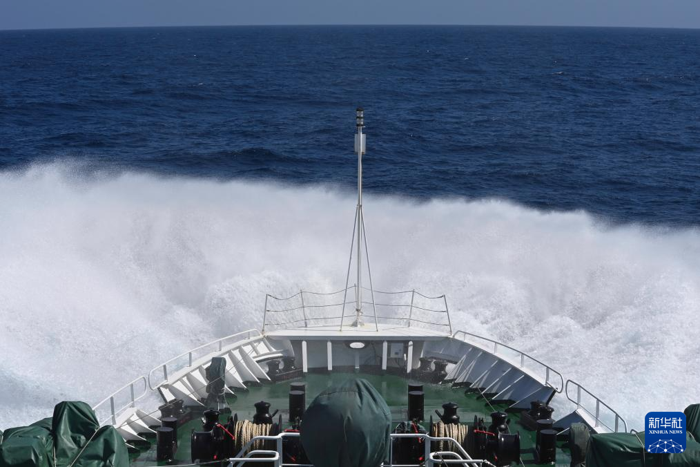 2月13日,中国海警万山舰在黄岩岛附近海域乘风破浪。