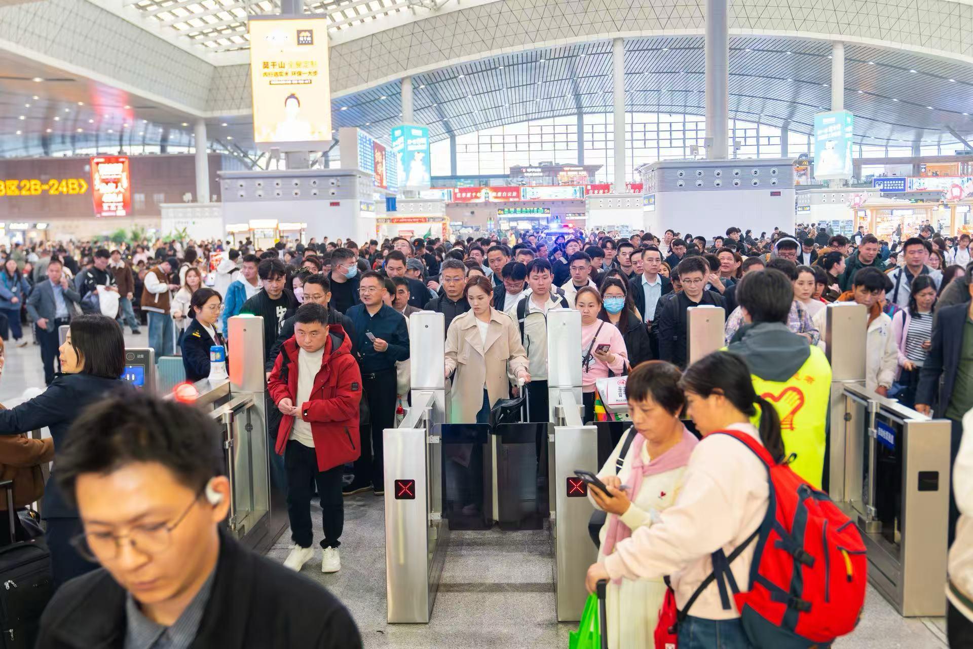 铁路部门温馨提示,节日期间车站客流较大,请广大旅客朋友们合理安排行程,按规定携带随身物品,预留充足时间进站乘车,以免耽误您的行程。客流高峰时段,建议优先从东进站口进站乘车,减少排队等候时间。