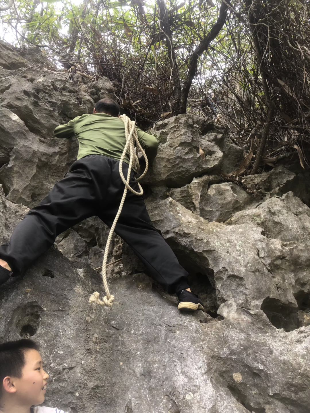 追寻先人的足迹在广西不是那么容易做到的。你除了得懂得利用竹竿过溪流,还得会在90度垂直的崖壁开凿出一条通天之路。