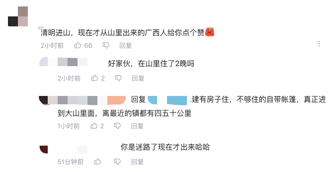 有的外地网友说他们扫墓,一个小时就搞定了,因为老祖宗都埋在一个山头。