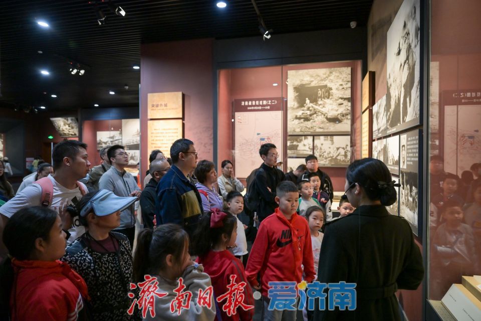 假期期间,济南战役纪念馆门前,前来参观的人群源源不断,大家全程安静有序,怀揣着对革命先烈的崇敬之心,依次进入馆内开启参观之旅。馆内陈列的历史照片、革命文物、战役沙盘、影像资料,完整还原了济南战役的峥嵘岁月,生动展现出革命先辈浴血奋战、不怕牺牲的英雄气概,深深触动着每一位参观者。
