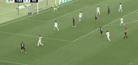 第61分钟,佳史扶左路传中,佐藤惠允头球攻门击中横梁
