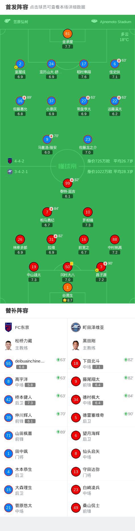 北京时间4月5日日本职业联赛J1 东区 第9轮,FC东京主场对阵町田泽维亚。最终比分FC东京 2-4 町田泽维亚。