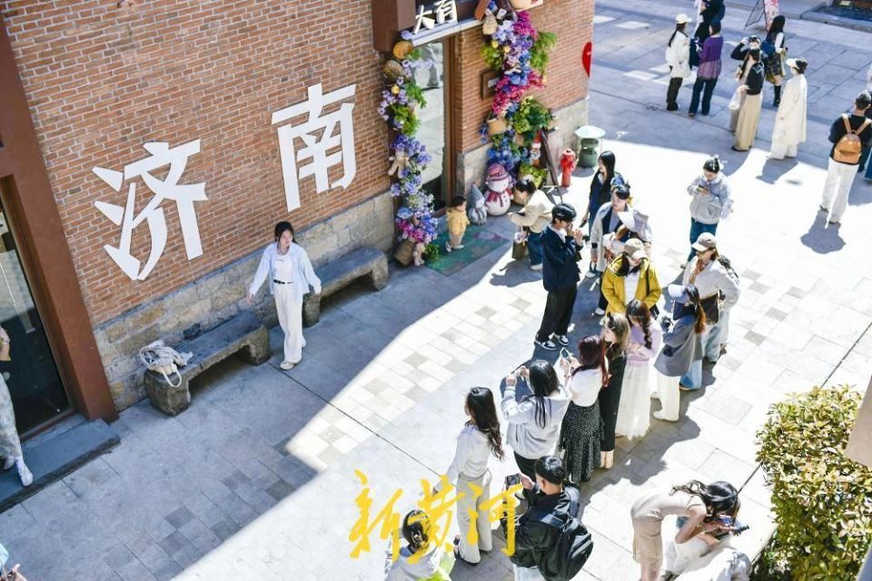 这些打卡点设计精巧、色彩明快,兼具城市文化符号与情感表达功能,成为年轻人镜头里的“最佳配角”。随着打卡客流激增,老商埠街区内的咖啡馆、文创店、餐饮店等也随之迎来消费高峰。多位商户反映,假期客流量比平时周末增长数倍,不少游客“拍完照顺便逛一逛、吃顿饭”,形成了“打卡+消费”的良性闭环。