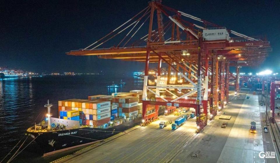 4月4日,随着“艾琳”轮顺利靠泊前湾港区集装箱码头,山东港口青岛港迎来了马士基全新推出的东南亚航线首航,东南亚方向航运布局再添强劲动能。目前,青岛港累计开通东南亚航线50余条,数量稳居我国北方港口首位,形成了覆盖东盟主要港口的高频次运营体系,为区域产业链供应链稳定畅通提供坚实支撑。