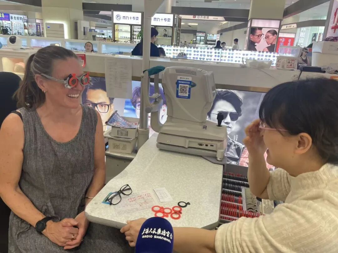 不一会儿,Talitha就选好了两幅款式各异的眼镜,几分钟就完成验光,店长童庆英建议她先走一圈、适应一下。Talitha告诉记者,去年,她在澳大利亚也配过一次眼镜,重复调整半年仍没达到要求。