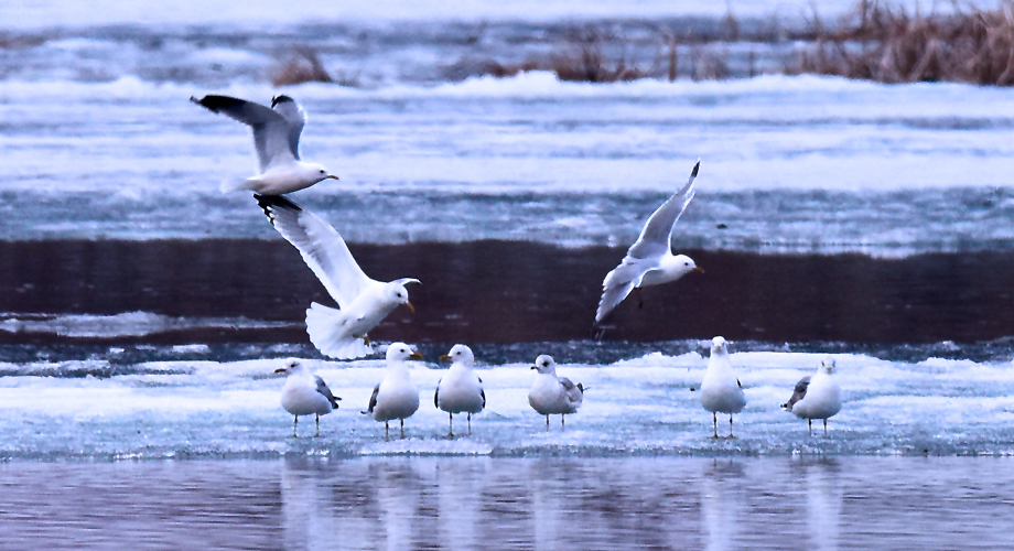 一群候鸟在冰面上休息。新华社发