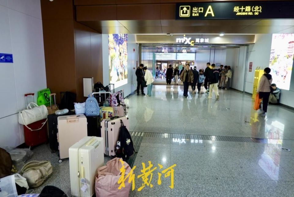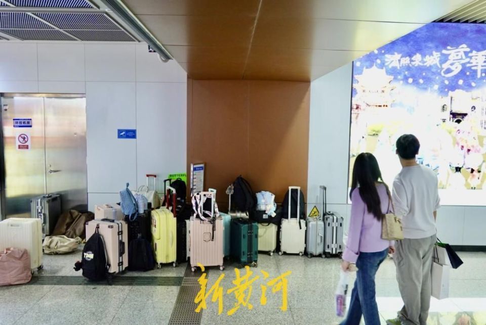 4月6日,清明假期最后一天,济南地铁4号线转山西路站内出现了一道独特的“风景线”。在进出站口与相邻商场的连接通道处,十余件行李箱、背包和手提袋沿着墙面一字排开,整齐摆放,却不见任何专人看管。这一“行李自助寄存点”引发了过往市民和游客的广泛关注与点赞。 现场可以看到,这些行李的主人大多是即将离济的外地游客。