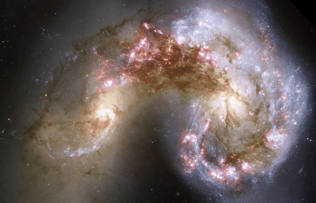 这一瞥宇宙暴力展现了星系合并的美丽。