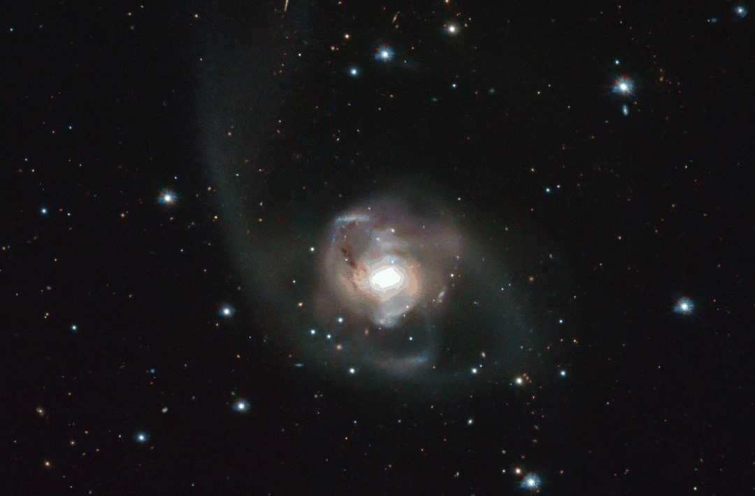 星系NGC7727拥有延伸的旋臂:这很可能是两个质量相当的星系近期发生重大合并后的结果。该星系内部存在两个超大质量黑洞,以及延伸的气体和恒星流,这展示了两个初始富含气体、质量相似的星系发生重大合并的一种可能结果。来源:杜伦大学CASUWFAU