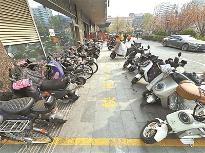 建国门街道城市管理办公室科长郁明介绍,此前,周边非机动车停放秩序混乱,共享单车、居民电动车、外卖快递车辆混停,占用人行道、盲道甚至机动车道现象严重,安全隐患突出,也屡次遭到市民投诉。