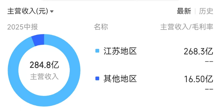 此外,南京银行跨区域布局进展相对缓慢,也是一个值得重视的问题。资料显示,该行早在2008年就开始跨区经营,但截至2025年中报,江苏地区收入高达268亿元,其他地区不足17亿元。