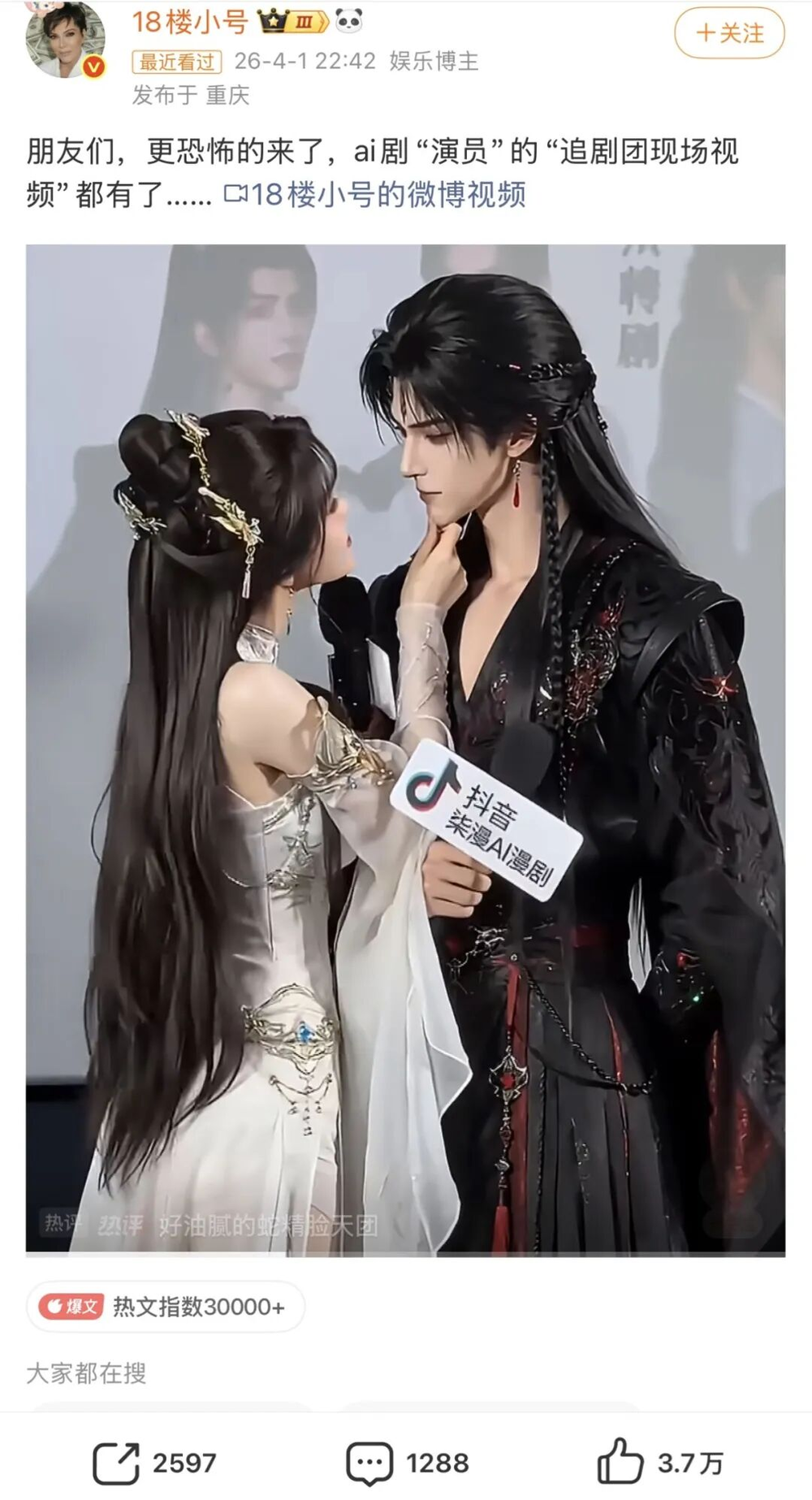这再次给过度依赖美颜的真人古偶敲响了警钟:当AI既能批量生产完美颜值,又能模仿人类宣发互动组CP时,真人古偶的核心竞争力,就更不能只建立在打扮得漂漂亮亮美美出片上了,演员的情感表达、角色内核和故事张力,才是现阶段的AI无法触碰的存在。