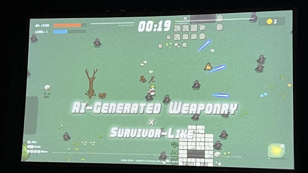 不过,Meshy不准备只停留在提供开发工具上,他们今后还想成为一家AI原生游戏公司。胡渊鸣介绍了自己对“AI原生游戏”的定义,并发布了新作《代号:黑箱》的Demo。这是一款幸存者like游戏,能让玩家用自然语言生成武器。