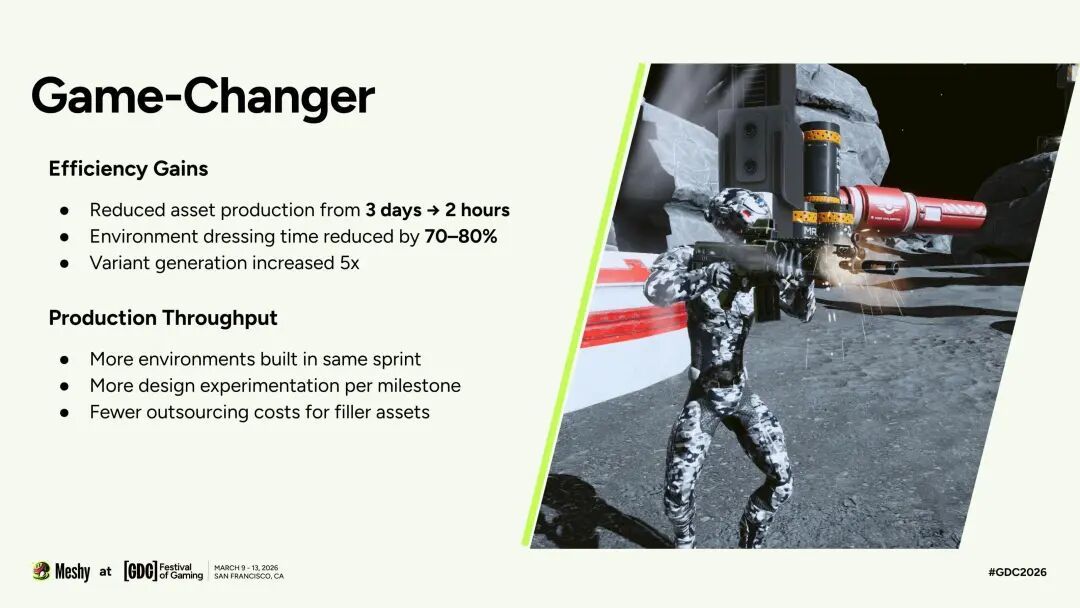 当然,Meshy融入游戏研发管线的过程也不是一帆风顺的,比如在Technical Art Games内部,美术人员一开始对此有所抵触。不过Meshy提升开发效率的效果是实打实的:
