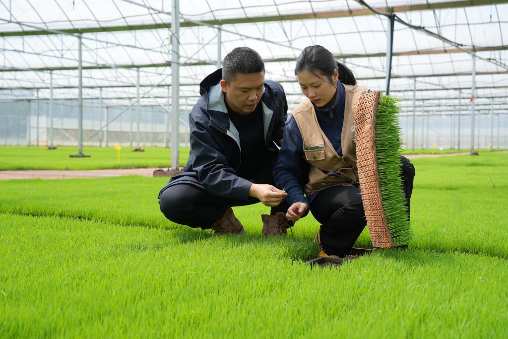 针对丘陵地区“巴掌田”难题,骆雨与丈夫大胆改革。他们整合零散地块,完善农田水利设施,引入适配丘陵地形的轻型履带拖拉机、液压转向农机等,破解小地块“无机可用”困境。同时,他们投资建起2万多平方米智慧育秧大棚,配备恒温恒湿系统,实现育秧工厂化、标准化。