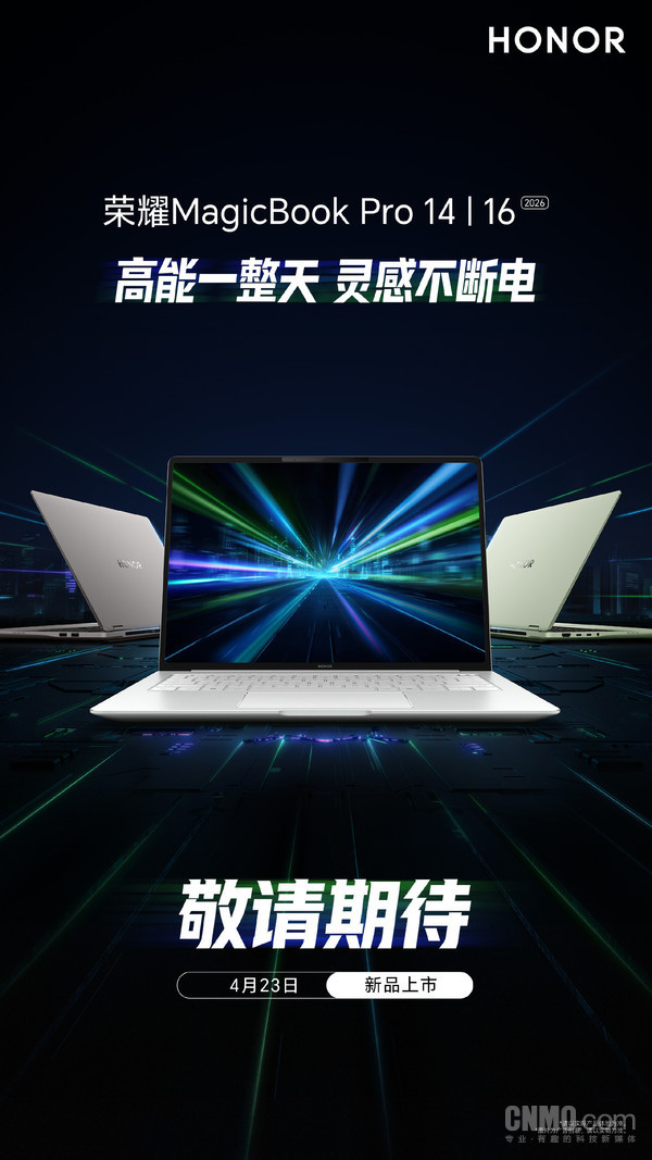 值得一提的是,4月23日并非仅发布荣耀笔记本X Plus系列。据多方信息,当天荣耀还将发布旗下首款游戏本——WIN系列,定位高端性能旗舰。同期亮相的还有荣耀MagicBook Pro 14/16系列等新品。