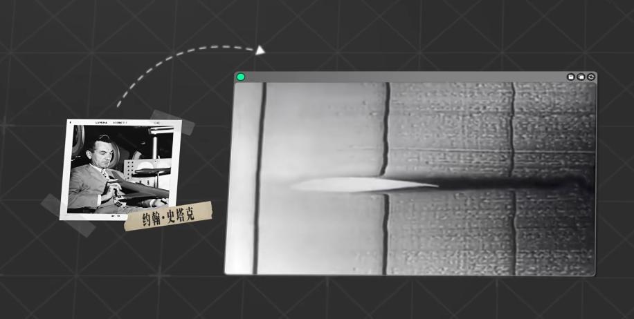 随后,负责调查的工程师约翰·史塔克利用纹影法在风洞中拍下了这起 “ 高空鬼压床 ” 事故中机翼周围的气流状态后发现,这股突然增大的压力不是机械故障,而是来自于看不见、摸不着的声音。