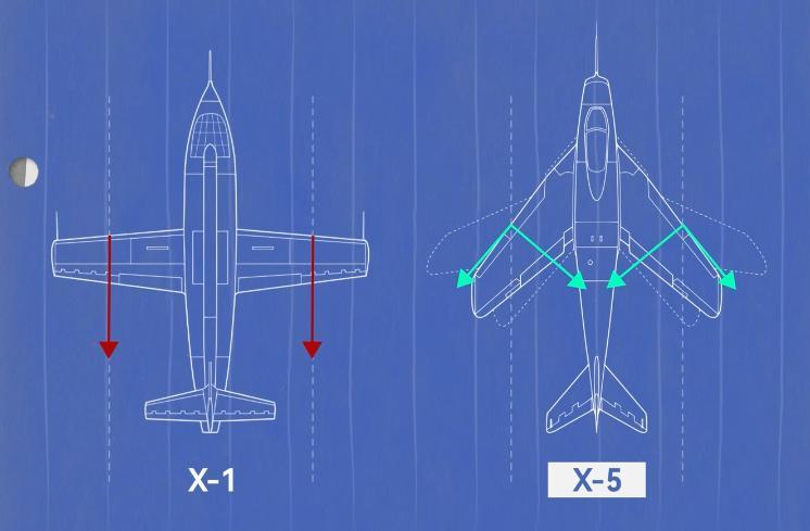 直到之后的 x5,又吸收了德国同行的设计,将原来平翼改成了能向后折叠,并能改变角度的可变后掠翼。
