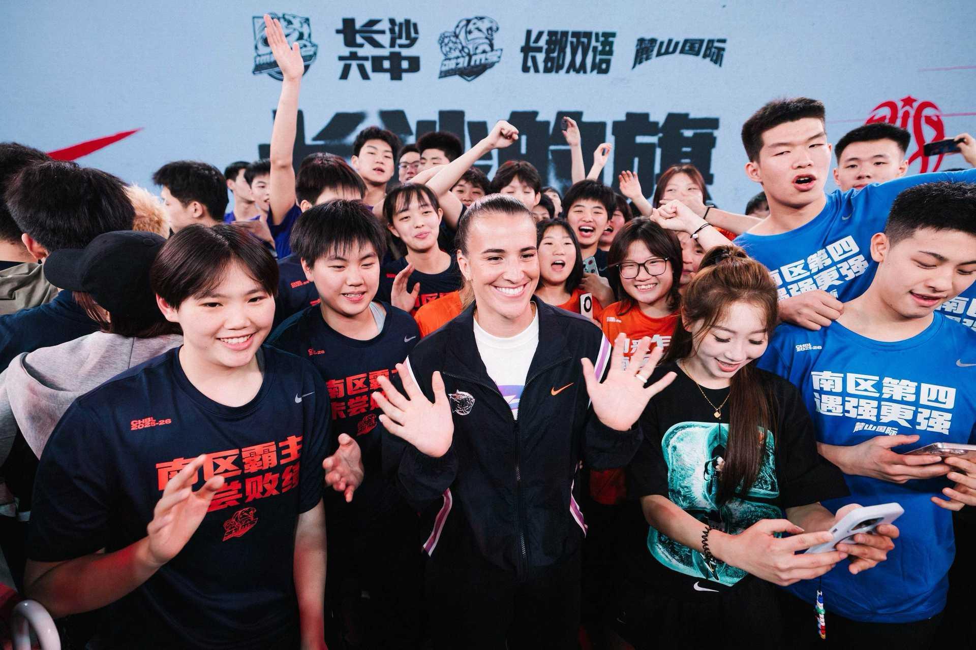 4月6日晚,萨布丽娜以特别嘉宾身份现身耐高长沙助威行动,见证地质中学、长沙六中、雅礼中学、长郡双语中学和麓山国际实验学校五支球队的出征时刻。
