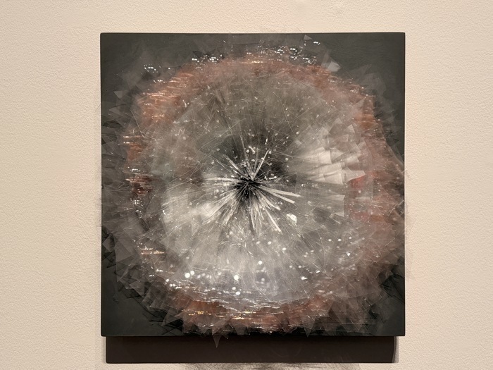 德国艺术家约瑟法·加施-穆赫的《2012年3月20日》中,无数玻璃碎片如星芒般向外发散,中心与黑色背景形成强烈对比,在光影下折射出璀璨光泽。作品既具雕塑的立体层次,又似视觉艺术的光影实验。