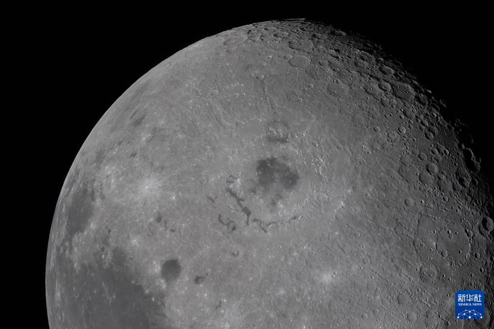 这是4月6日从执行“阿耳忒弥斯2号”载人绕月飞行任务的“猎户座”飞船上拍摄的月球表面。
