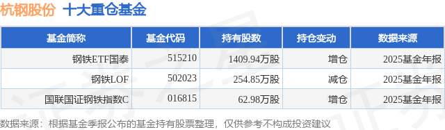 重仓杭钢股份的公募基金请见下表: