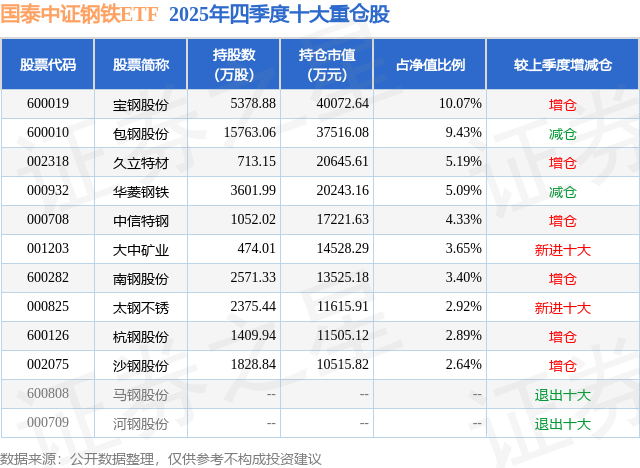 钢铁ETF国泰的前十大重仓股如下: