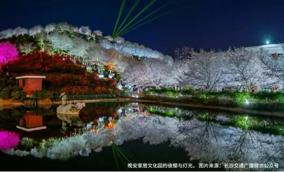 这里是长沙近期爆火的夜樱打卡地,灯光勾勒下,樱花如粉雾朦胧,氛围感拉满。除了静态赏花,园区还会举办音乐会、创意集市等活动。