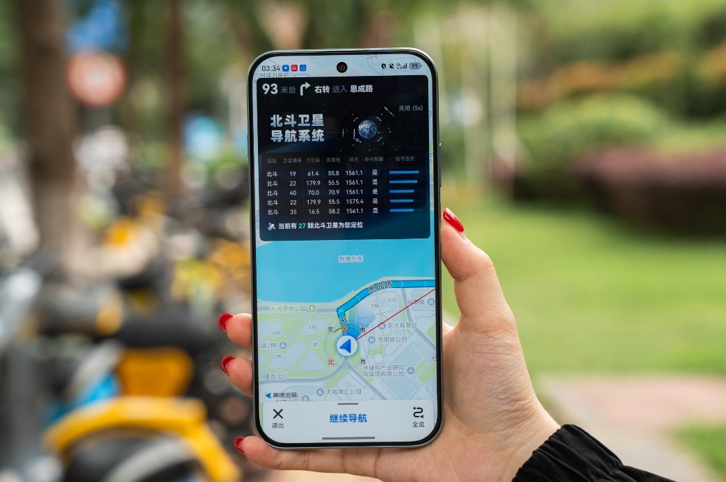 我们实测了步行、骑行、驾车等多种导航场景,全程下来没有出现任何定位漂移、信号丢失的情况,路线更新毫无延迟,即便是在高楼遮挡的复杂 CBD 环境下,也能精准定位,不会出现走错路的情况。