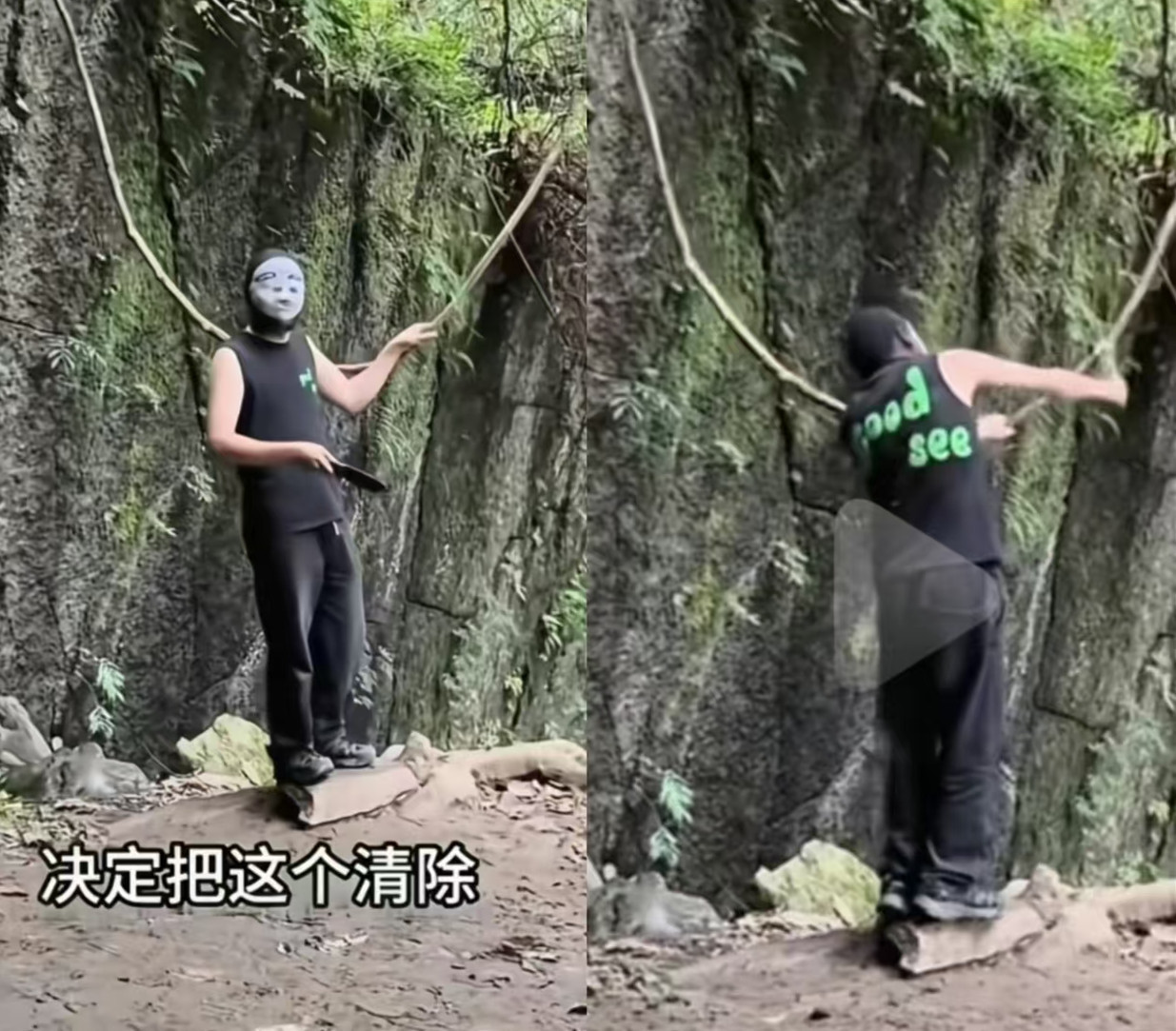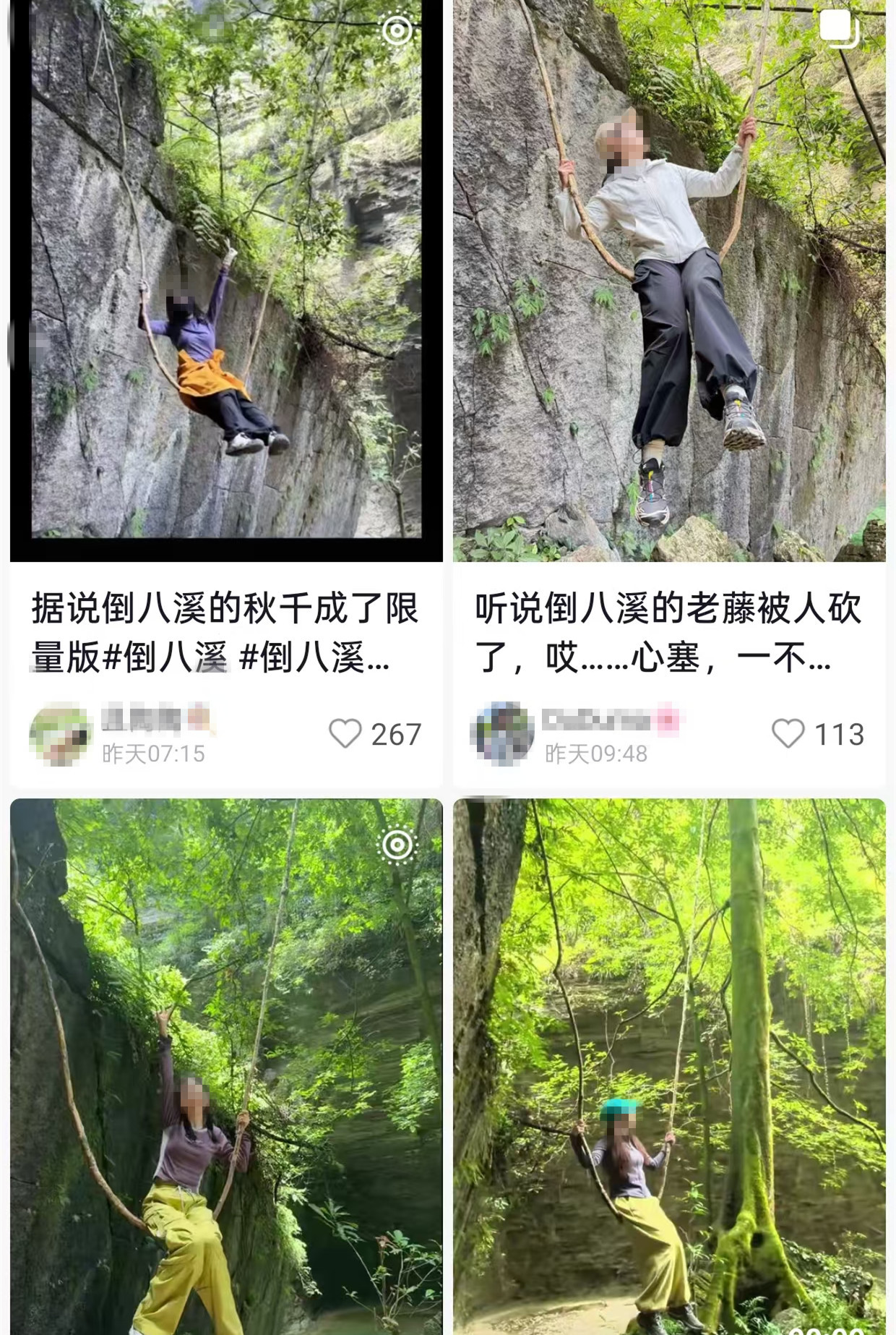 近日,多位网友发视频,称湖北宜昌一网红树藤被多名蒙面人砍断,此外,徒步者设置的沿途路标也被收走。据悉,该藤蔓因可以“荡秋千”,吸引不少人前往拍照打卡。