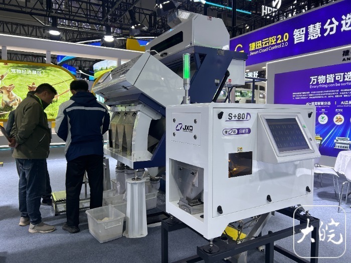 走进安徽捷迅光电技术有限公司的展区,一条看似平常却内藏“乾坤”的大米云控产线吸引了记者的注意。这可不是传统意义上的大米加工线,而是由色选机、S+80大米分析仪和云控服务器组成的“超级智能体”——捷迅云控2.0。