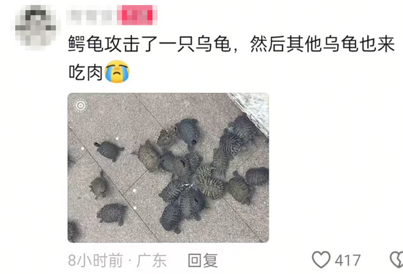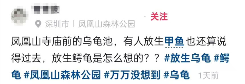 4月9日,广东IP网友发视频,称在深圳凤凰山森林公园寺庙前的乌龟池发现鳄龟,视频发布者还表示这只鳄龟已攻击过池中其他乌龟。