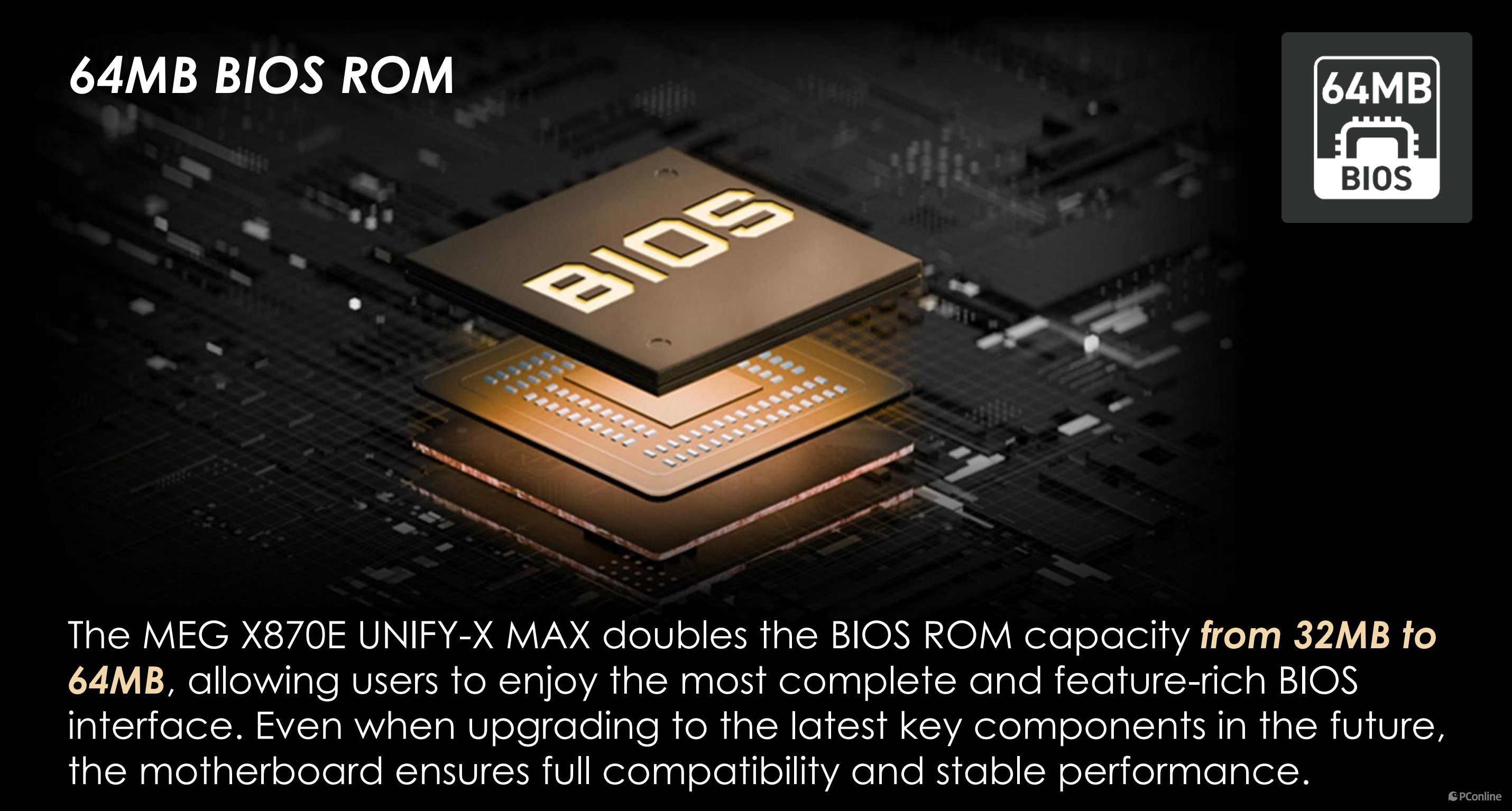同时,主板配备了 64MB 的大容量 BIOS ROM,相比传统 32MB BIOS,容量直接翻倍,不仅能带来更完整、更丰富的 BIOS 功能界面,更能保证未来升级最新的 AM5 处理器时,依旧能实现完整兼容与性能释放,无需担心 BIOS 容量不足导致的功能删减,大幅延长了主板的使用寿命。