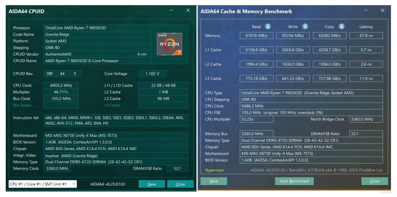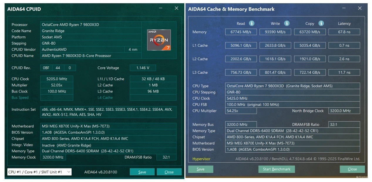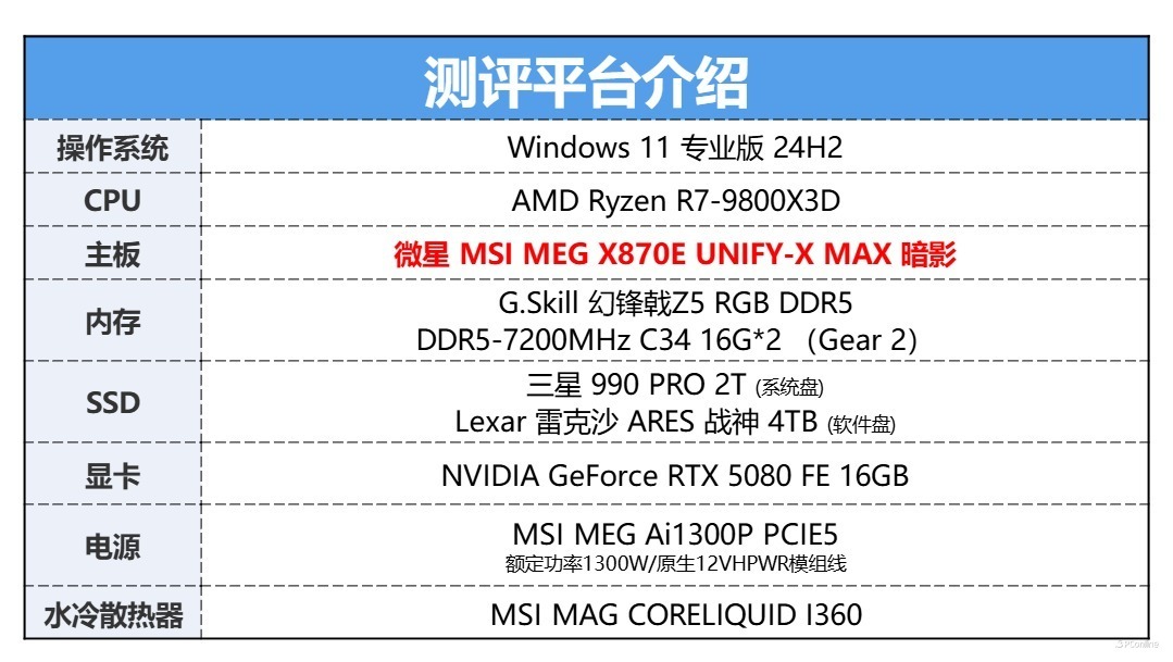 开始测试前,照例介绍一下本次的测试平台,为了发挥微星MEG X870E UNIFY-X MAX 暗影主板的最佳效能,我们用的是目前AMD的游戏神U锐龙7 9800X3D!内存则是两根16GB DDR5-7200 MHz组成32GB双通道。
