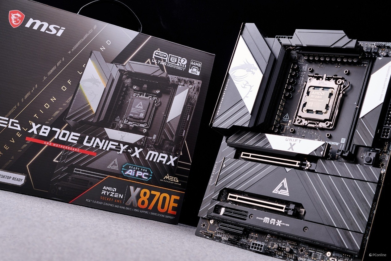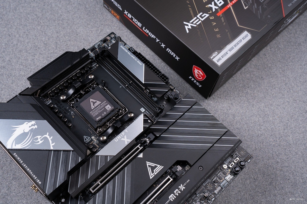 如今,全新的锐龙 9000 系列处理器携更强的单核与多核性能而来,配套的 AMD X870E 芯片组也带来了更完善的 PCIe 通道分配、更出色的超频潜力与更成熟的平台兼容性,微星也顺势为超频玩家献上了这份集 UNIFY 系列技术沉淀之大成的作品 ——MEG X870E UNIFY-X MAX 暗影主板。它完整继承了 UNIFY 系列刻在基因里的超频血统,以专为破纪录而生的 2 DIMM 专属架构、硬核的 OC Engine 外频调控能力,再度突破了 AM5 平台的超频上限。