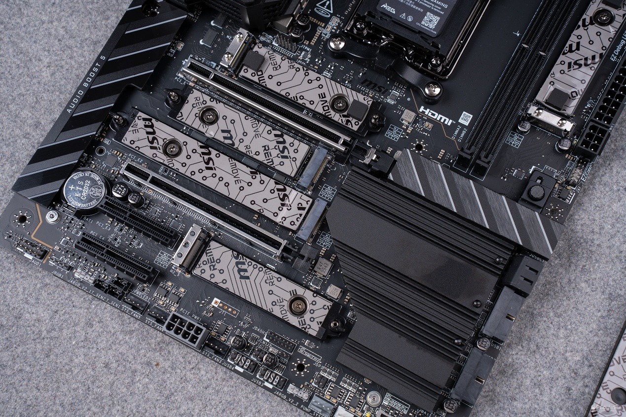 揭开以后你就可以看到微星MEG X870E UNIFY-X MAX暗影主板的两颗南桥芯片,与上代的X670E一致,并且相比X870芯片,X870E的扩展性会更强。
