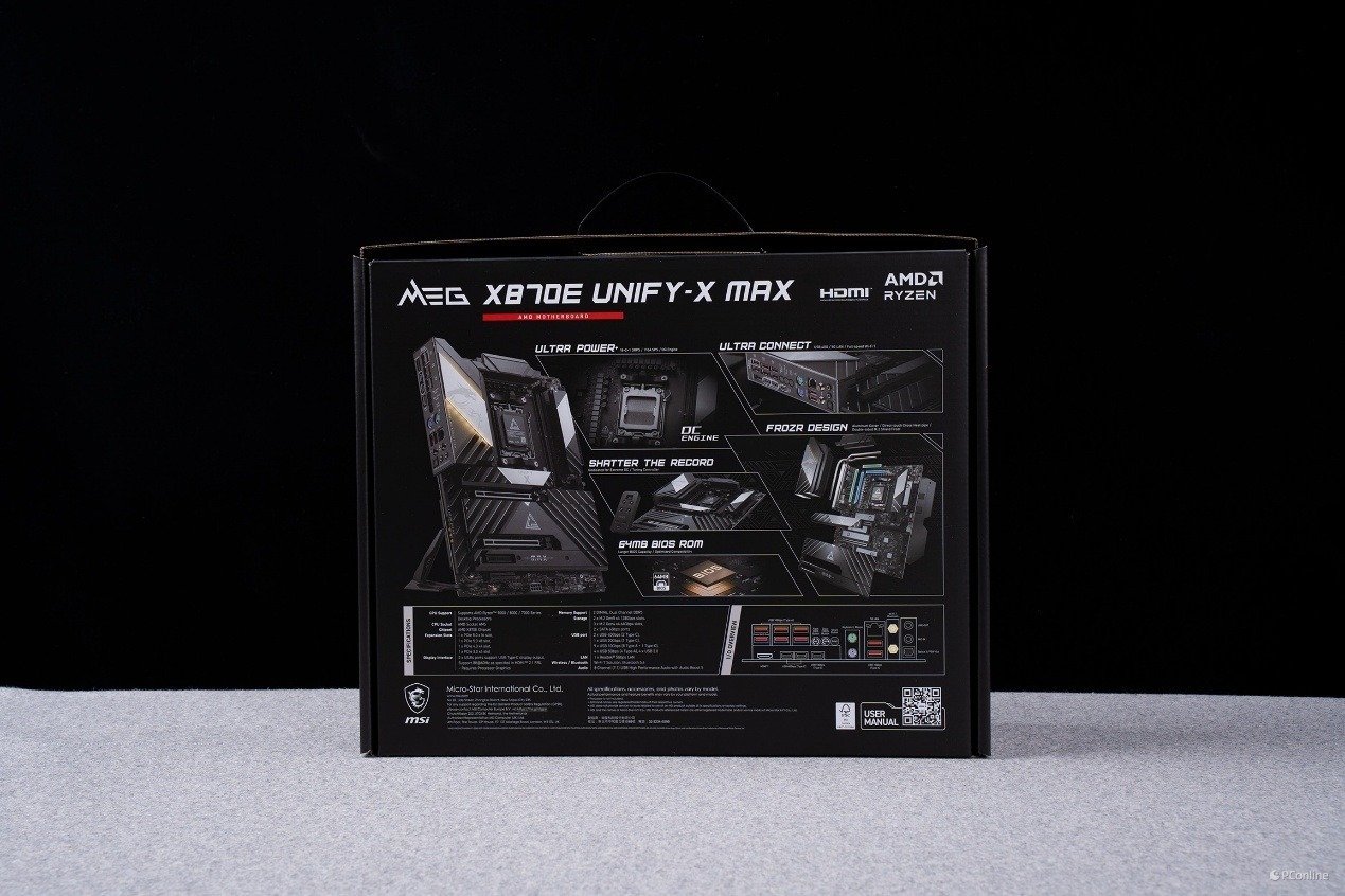 配置方面,微星MEG X870E UNIFY-X MAX暗影用的还是AM5接口,这也意味着上一代锐龙7000系处理器也能在这款主板上使用。