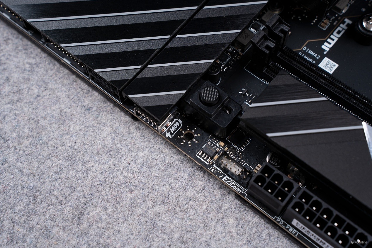 更具实用性的是,这款主板还搭载了USB PD 60W 快充功能,为了实现满速 60W PD 快充输出,主板专门配备了专属的6-pin PD_PWR1 电源接口,用户只需将该接口与 ATX 电源的对应供电接口稳定连接,即可解锁前置 Type-C 接口的 60W PD 快充能力。