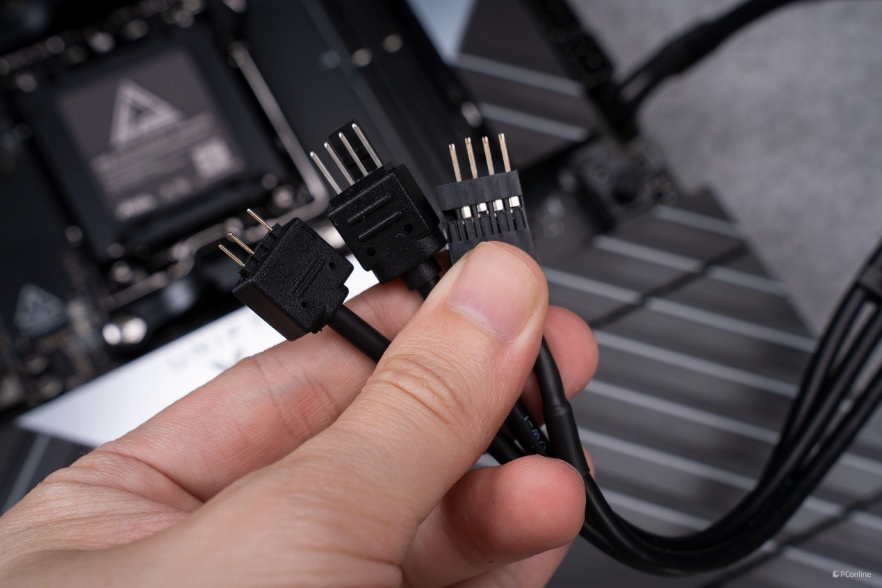 除此之外,还有一样配件是微星主板独有的,就是1转3 EZ连接电缆V2,它可以扩展出1个4-PIN风扇、一个3-PIN ARGB以及一个4-PIN作用于USB2.0连接。多接口不仅能够用于连接水冷散热器、风扇等,还为玩家提供一种更容易的途径,连接机箱面板与主板,方便组装者在机箱外部预先接好前置面板线材。