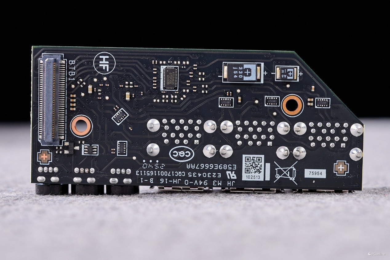 另外,我们也对这款主板的I/O部分进行了拆解,发现其USB接口采用了双层PCB设计,靠上的USB-A接口和3个刷BIOS、清除CMOS和Smart Button按钮整齐地被焊在一块小板上。