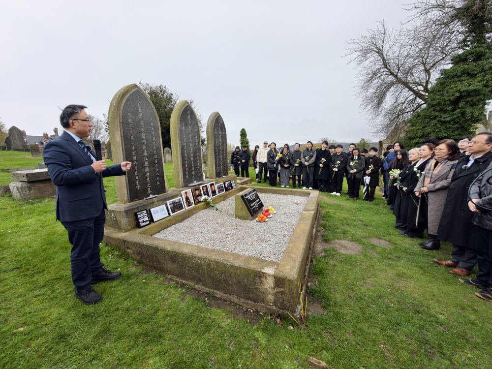 “明天就是清明节了。”中国驻曼彻斯特总领事唐锐的声音在墓园里显得格外清晰,“今天我们站在远离祖国8000公里的英国纽卡斯尔市,面前有6座遥望华夏的墓碑。”