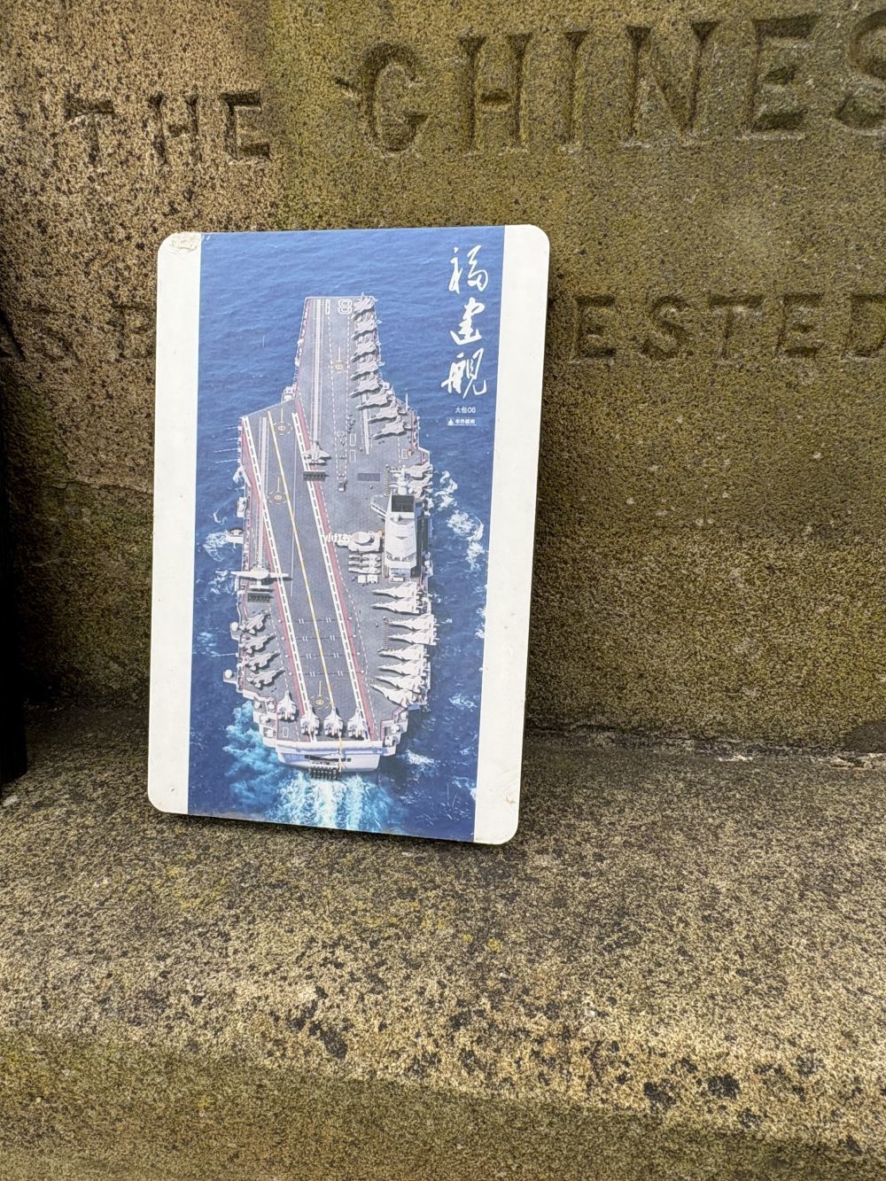 北洋海军水兵墓前摆放的航母图片。吴黎明摄